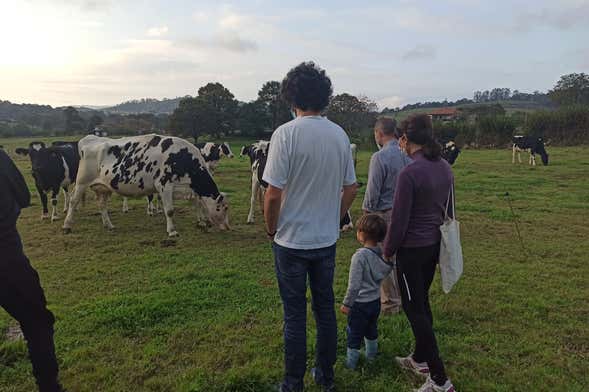 Empezaremos a recorrer la finca, la primera explotación de leche calificada como ecológica en Asturias. Gracias a las explicaciones del ganadero que nos acompañará, aprenderemos a diferenciar las razas de vacas y los alimentos que podemos obtener de ellas.