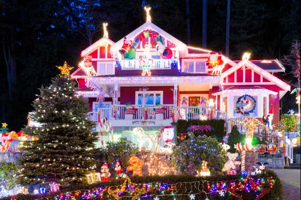Renos con luces, personajes hinchables, muñecos que se mueven, música a todo volumen y efectos especiales hacen de estas casas auténticas obras de arte. ¡Se dice que hay vecinos que se gastan hasta 20.000 US$ en decorar su casa! Podréis hacer un montón de fotos mientras pasamos junto a las viviendas más llamativas.