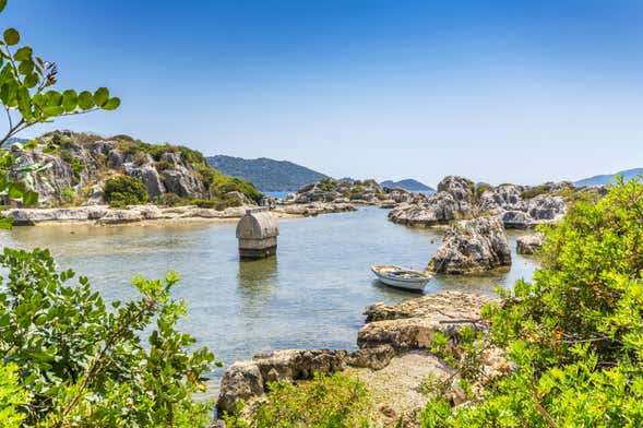 En apenas una hora, llegaremos a esta ciudad hundida, uno de los lugares más bellos de la costa mediterránea. Pasaremos junto a los restos submarinos de la antigua ciudad y conoceremos los secretos de estas majestuosas ruinas. Abandonaremos el barco y podréis visitar el Castillo de Simena.