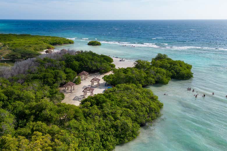 Desde la orilla de Mangel Halto, subiremos a bordo de las embarcaciones y empezaremos a navegar por las aguas turquesas, que revelan un fondo de arenas blancas y corales. A nuestro alrededor, los manglares formarán un dosel verde con raíces entrelazadas, alimentando a aves marinas y anfibios.