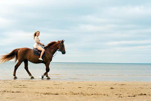¿No habéis montado a caballo antes? No os preocupéis, os explicaremos todo lo que necesitáis saber y veréis que es mucho más fácil de lo que creéis. Después, llegará lo más divertido, subiremos a lomos de estos dóciles animales e iremos rumbo a la costa.