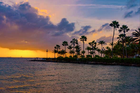 Cómodos cojines, sofás, aperitivos salados, fruta fresca, barra libre de cócteles y, sobre todo, unas vistas únicas del atardecer de Aruba. Este paseo en barco os enamorará.