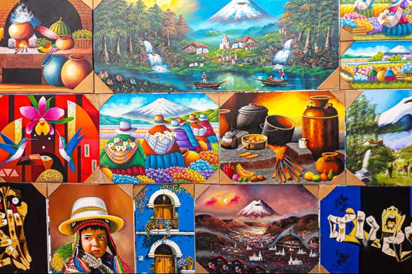 Continuaremos nuestra ruta hasta la Plaza de Ponchos, también conocida como Mercado Centenario. ¿Sabíais que es el mercado indígena más grande de Sudamérica? Entre sus puestos encontraremos desde atrapasueños hasta platos pintados a mano. Os contaremos la importancia que tiene para el pueblo otavaleño la producción textil y los objetos artesanales.