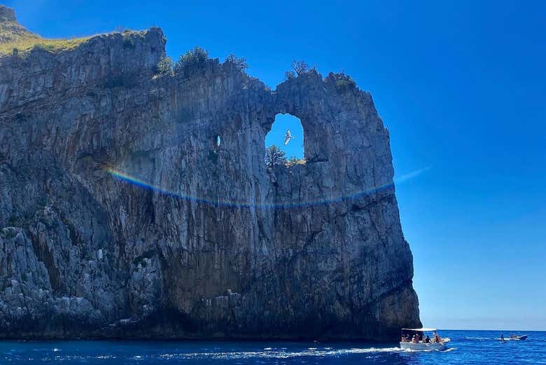 Para terminar el paseo en barco, navegaremos junto a dos monumentos naturales de lo más especiales de la costa de Palinuro: la Pila y el Arco Natural. ¡Momento foto!