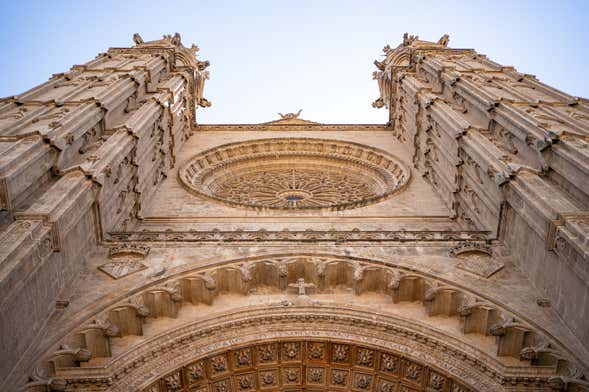 Nos adentraremos entre pinares, palmeras y murallas para ver el lado más monumental de Palma. En nuestro paseo nos toparemos con un imponente edificio de piedra arenisca dorada: la catedral de Palma de Mallorca. Se trata de una de las estructuras góticas más altas de Europa, que se ha convertido en un símbolo de la capital balear.