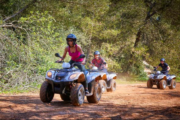 Empezaremos el tour recorriendo la zona de El Arenal. Desde allí, tomaremos varios caminos asfaltados a través de los bosques que nos llevarán hasta Lluchmayor. A continuación, bordearemos las faldas del monte Randa hasta alcanzar la pintoresca localidad de Algaida. ¿Tenéis a mano vuestra cámara? Nos detendremos en este municipio para hacer fotos de las montañas interiores de la isla. Continuaremos el tour en quad realizando una parada fotografica en Llucmajor. ¡Sus paisajes os sorprenderán!