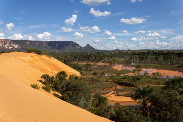 A continuación, tomaremos un delicioso almuerzo en la comunidad de Quilombo. Con las fuerzas repuestas, viajaremos hasta las dunas de Jalapão, ¡todo un espectáculo natural! Concluiremos el día en Mateiros, donde cenaremos y pasaremos la noche.