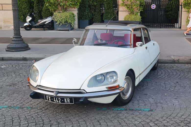 A la hora indicada os recogeremos en vuestro hotel de París a bordo de un Citroën DS. Este coche clásico, que salió al mercado en 1955, supuso toda una revolución en su época debido a su techo convertible.