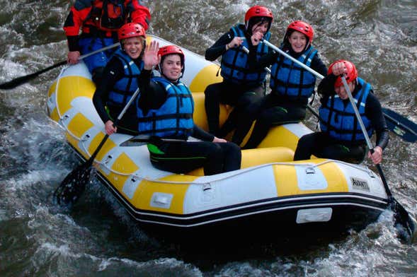 A continuación, subiremos a la balsa y dejaremos que la fuerza del Deva nos impulse río abajo. ¿Estáis listos? Durante aproximadamente tres horas, recorreremos un tramo de 6 kilómetros por esta zona de aguas bravas mientras ponemos a prueba vuestra destreza en este elemento.