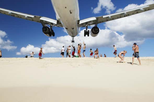 Desde Marigot regresaremos a la parte neerlandesa para descubrir una de las grandes atracciones de la isla. Se trata de Maho Beach, una playa en la que los aviones planean a muy baja altura sobre los bañistas. ¿El motivo? La gran proximidad del aeropuerto, que está prácticamente pegado a la costa.