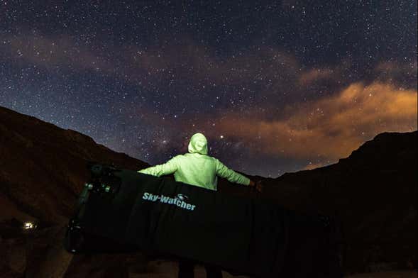 A continuación, nos dirigiremos al observatorio natural de La Isla, situado en las afueras de la localidad. En este asombroso lugar utilizaremos un potente telescopio de 20 pulgadas que nos permitirá identificar planetas, cúmulos, galaxias y constelaciones. ¡Os encantará!