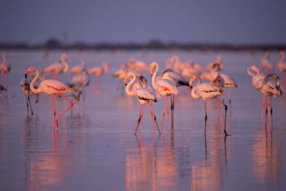 Avistamiento de flamencos en el Delta del Ebro al atardecer