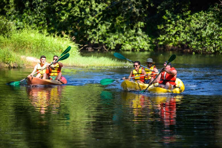 Esta ruta de aproximadamente 6,5 kilómetros y baja dificultad nos llevará entre 2,5 y 3 horas, según el ritmo del grupo. A lo largo de este precioso recorrido fluvial, estaremos rodeados de vegetación autóctona, pequeños rápidos y tramos tranquilos ideales para disfrutar con calma del paisaje y de la fauna local.