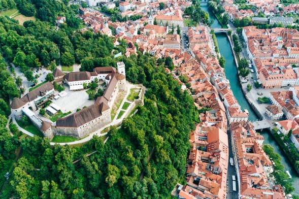 Tras atravesar este viaducto, nos acercaremos a la estación del funicular que nos llevará hasta la colina en la que se sitúa el castillo de Liubliana. Durante el viaje, tendréis unas vistas inolvidables de la capital. ¡Seguro que no dejáis de hacer fotos! Al llegar a la parte más alta, realizaremos un tour por la fortaleza, conociendo así mismo la historia de los primeros asentamientos de la ciudad. ¡Nos remontaremos a la Edad de Bronce!