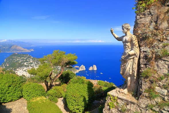 Durante la travesía, bordearemos la costa de Capri admirando desde el barco las aguas cristalinas de sus grutas marinas, ruinas de antiguos baños romanos y, por supuesto, la aldea de pescadores de Marina Grande. Divisaremos también el faro de Punta Carena, admiraremos la Casa Malaparte y veremos otros monumentos naturales como el Arco Naturale o los farallones.