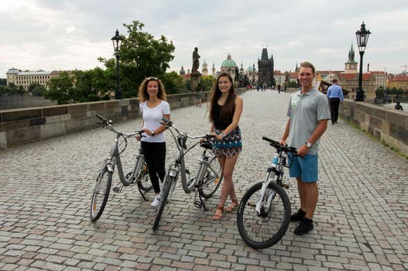 El tour en bicicleta por Praga está disponible en bicicleta estándar y en bicicleta eléctrica. Las bicicletas eléctricas poseen un motor eléctrico que ayuda en las cuestas y durante el pedaleo, proporcionando una experiencia más cómoda y relajada por las calles de Praga.