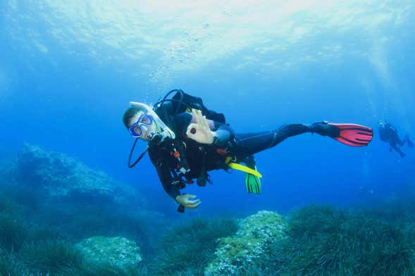 Con el equipo puesto, nos lanzaremos al agua y comenzaremos a sumergirnos hasta una profundidad máxima de 12 metros. ¡Veréis cómo en unos pocos minutos os resultará de lo más natural respirar a través del regulador!
