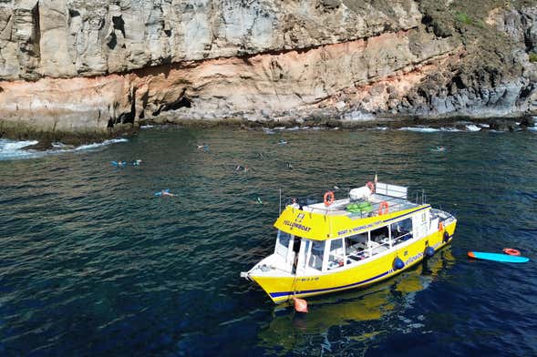 Pero aquí no termina el paseo, ya que nos detendremos en El Parchel, una pequeña playa a la que solamente se puede acceder en barco. Allí, os prestaremos el equipo de snorkel y podréis daros un chapuzón para ir en busca de la vida marina que habita en los fondos de Gran Canaria. ¿Cuántos peces seréis capaces de identificar?