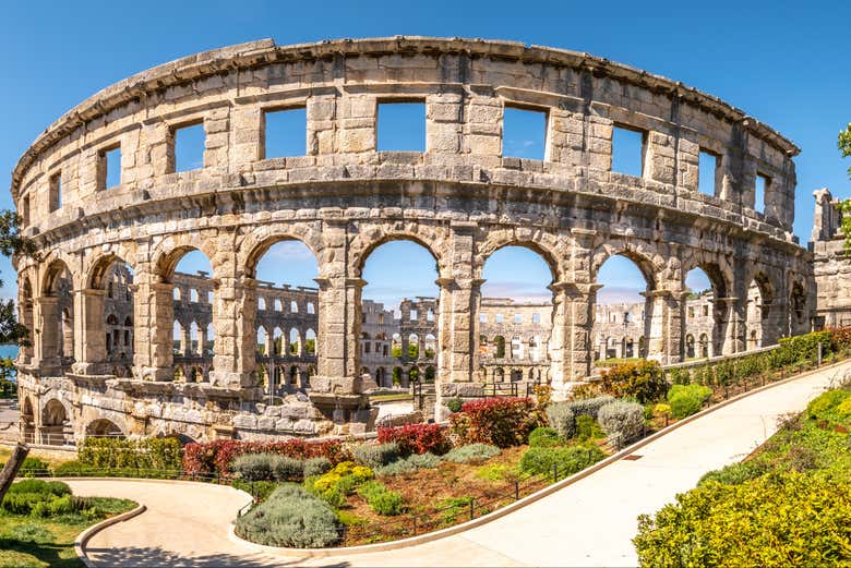 El Anfiteatro de Pula es el edificio romano mejor conservado de toda Croacia y uno de los anfiteatros más grandes del mundo, con una superficie de más de 11000 metros cuadrados.