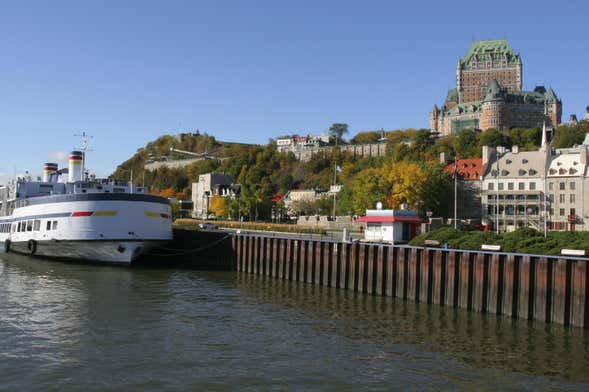 Zarparéis a la hora indicada desde el puerto viejo de Quebec a bordo de un lujoso barco, desde donde contemplaréis algunas de las panorámicas más bonitas de la única ciudad amurallada de América del Norte.