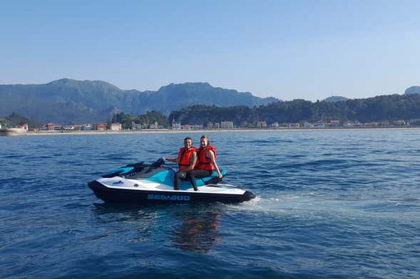 Equipados con los trajes de neopreno y los chalecos, subiremos a las motos de agua. A partir de este momento, ¡toca disfrutar! Conduciremos estos potentes vehículos a toda velocidad por los espectaculares paisajes de Ribadesella, un litoral repleto de secretos. ¿Sabíais porque la llaman la costa de los dinosaurios? ¡Os lo contaremos!