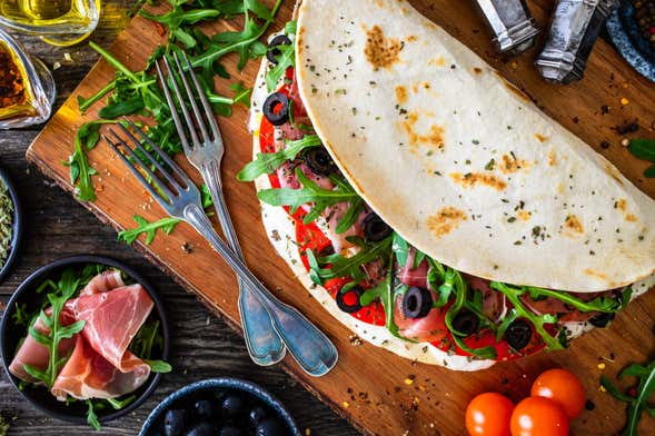 La piadina, un pan plano elaborado con harina de trigo, y que suele ir relleno de jamón y otros alimentos, es uno de los productos más populares de Emilia-Romaña. Comenzaremos el tour por el museo conociendo los orígenes de la piadina, que se remontan a la época del Neolítico.