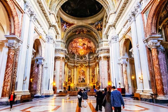 A continuación, nos dirigiremos a San Ignacio de Loyola, construida bajo la orden del papa Gregorio XV en 1626 y considerada como una de las más impresionantes de la capital italiana. ¿Sabíais que una de sus características es su cúpula falsa? Si miráis hacia arriba en la nave central, encontraréis una ilusión óptica. ¡Os encantará!
