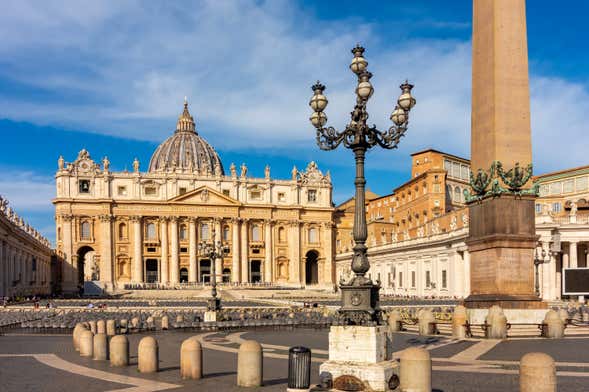 Esta imponente obra de ingeniería y arte se construyó a lo largo de más de 100 años gracias al tributo de artistas de la talla de Bramante, Miguel Ángel y Bernini. En el interior, nos detendremos ante el baldaquino de Gian Lorenzo Bernini y pasaremos frente a la famosa Piedad de Miguel Ángel.