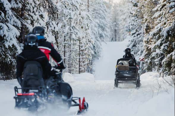 Aventura en moto de nieve + Paseo en trineo de renos y huskies