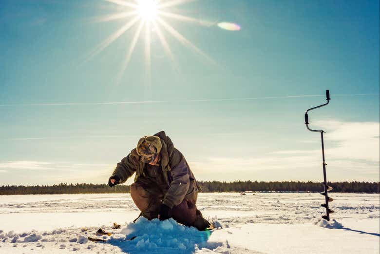 Pasaremos a recogeros por vuestro hotel de Saariselkä a la hora indicada y nos adentraremos en los bosques de los alrededores de la localidad finlandesa en busca del mejor sitio para llevar a cabo la actividad. ¡Vamos a pescar en el hielo!