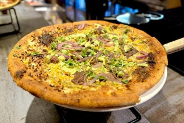 También recorreremos el Paseo del Río, donde tomaremos una porción de pizza con costillas BBQ, salvia frita, cebolla morada y una exquisita salsa cremosa de queso azul. ¡Os encantará!