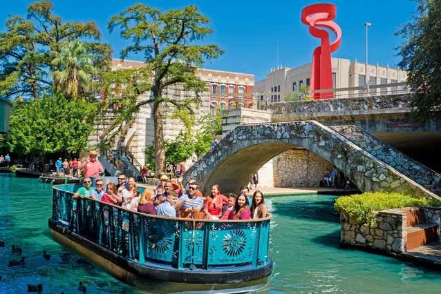 Finalmente, nos dirigiremos al Paseo del Río, una vía fluvial urbana de 24 kilómetros, y disfrutaremos de un relajante crucero de 35 minutos. Obtendremos nuevas perspectivas sobre la cultura, la historia y la arquitectura de la ciudad mientras pasamos por múltiples puntos de interés, como el primer barrio de la ciudad, La Villita, el Old Mill Crossing y el puente de Selena.
