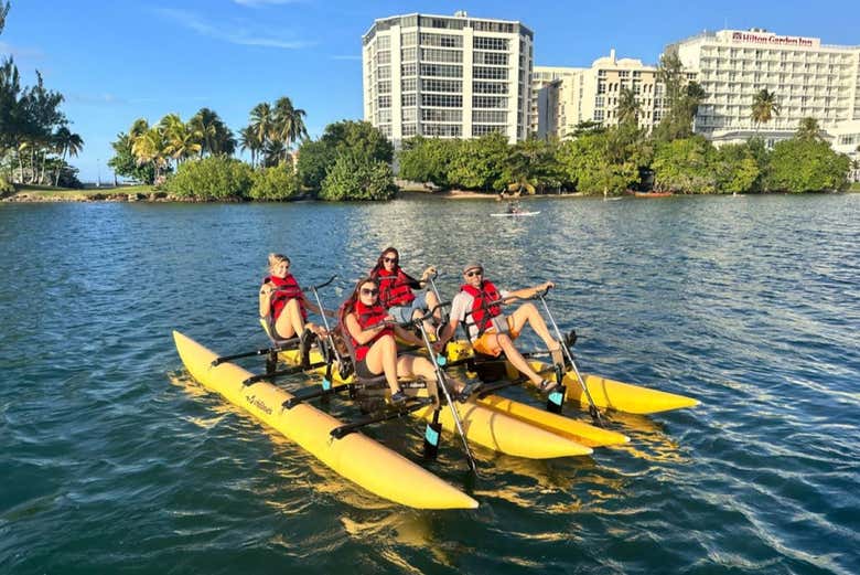 ¿Preparados para explorar uno de los ecosistemas más fascinantes de San Juan? La travesía comenzará tras reunirnos a la hora indicada en la avenida Manuel Fernández Juncos, donde después de una introducción os daremos las bicicletas acuáticas de dos asientos y nos dispondremos a participar en una sesión de preparación de 30 minutos en las orillas de la laguna del Condado.