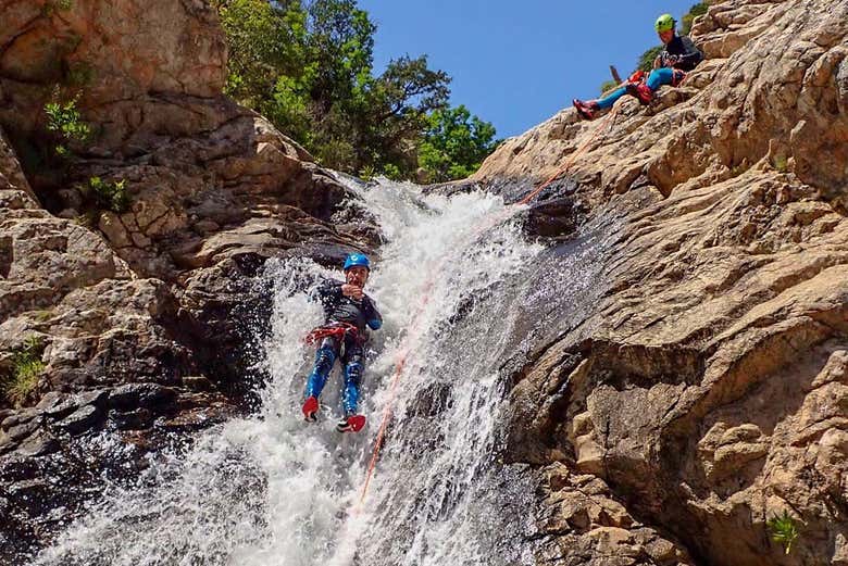 Recorreremos parte del cauce del río Pitrisconi buceando, saltando, nadando y haciendo rápel. Mientras, admiraremos sus imponentes gargantas de granito talladas por el agua y sus piscinas naturales. ¡También pasaremos junto a sus cascadas, donde el agua fluye durante todo el año!