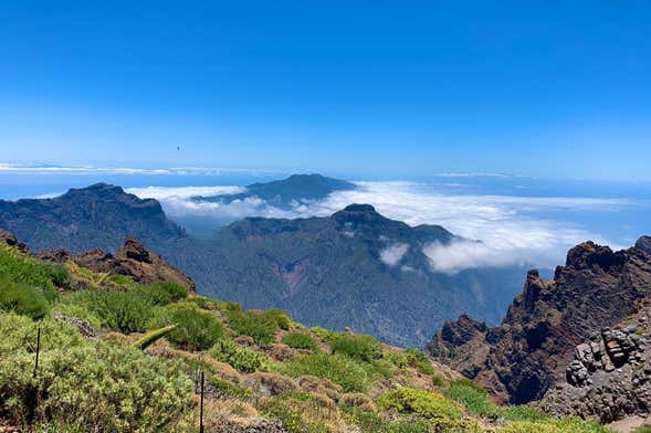 Para regresar, descenderemos por el lado este de la isla, observando los distintos pisos de vegetación canaria. Haremos una parada en el Mirador de Los Andenes para contemplar el impresionante Barranco de Las Angustias y, como broche final, visitaremos el Santuario de Nuestra Señora de las Nieves, la patrona de La Palma, y el Mirador de La Concepción. Desde aquí, las vistas de Santa Cruz de La Palma y la costa este de la isla son magníficas.