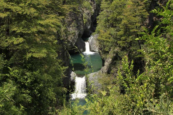A primera hora pasaremos a buscaros a vuestro hotel y pondremos rumbo al sur de Santiago de Chile. Durante el trayecto en autobús, haremos una parada para desayunar (desayuno no incluido en el precio) y continuaremos hasta nuestro destino. Después de casi cuatro horas de viaje, llegaremos a la zona protegida del Parque Nacional Radal Siete Tazas.