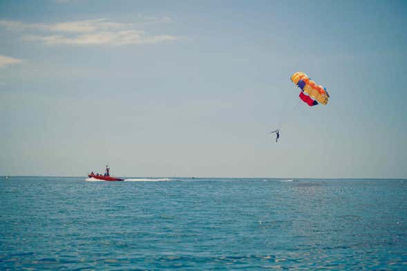 Una vez allí, os daremos una breve charla introductoria sobre la actividad que vamos a realizar y, a continuación, subiremos a la lancha rápida para dar comienzo a esta experiencia de parasailing en Sharm el-Sheij.