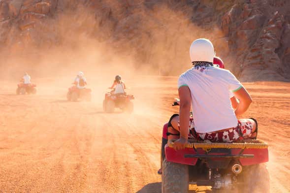 A la hora indicada pasaremos a recogeros por vuestro hotel en Sharm el-Sheij para poneros rumbo al desierto egipcio, en la península del Sinaí. Una vez allí, os equiparéis con un casco y recibiréis las indicaciones necesarias para conducir vuestro quad.