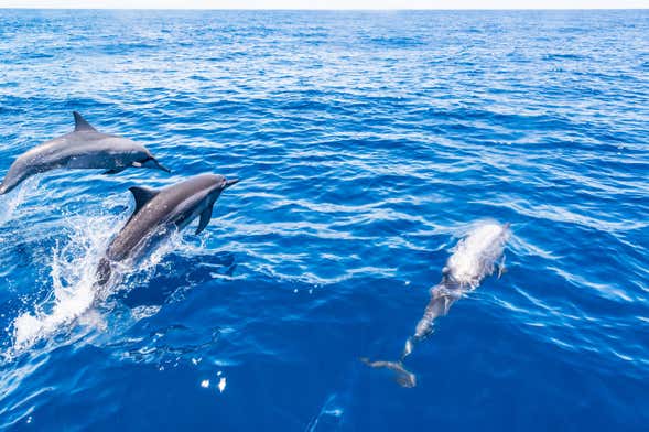 ¿Tenéis ganas de ver los delfines y ballenas que habitan en las aguas de La Palma? Navegaremos por el Atlántico tratando de avistar a estos bellos cetáceos en su hábitat natural. Si tenemos suerte podremos divisar delfines, toparnos con una manada de calderones o, incluso, ver las sorprendentes columnas de aire húmedo que expulsan las ballenas al subir a la superficie para respirar. ¡Estad muy atentos!