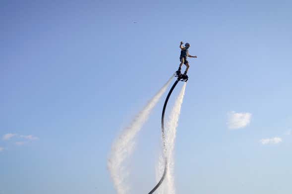 Durante 20 minutos, podréis hacer giros sobre el mar, planear, ascender e incluso hacer piruetas. No hace falta que tengáis una gran condición física. Tan solo tendréis que dejaros impulsar por un cañón de agua que os permitirá alcanzar unos 12 metros de altura.