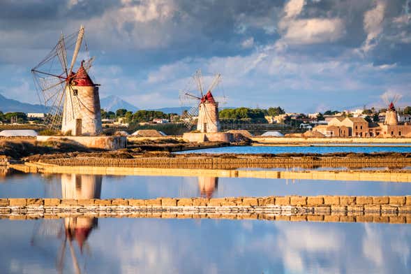 Nos encontraremos en el centro de Trapani a la hora acordada. Desde allí, nos trasladaremos hasta las cercanas Salinas de Trapani, a tan solo quince minutos del centro histórico de la localidad.