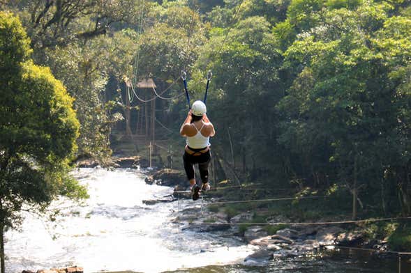 Nos reuniremos a la hora que elijáis en el Parque das Laranjeiras para iniciar esta actividad de tirolina en Três Coroas. ¿Estáis preparados para descargar adrenalina en un entorno natural único?