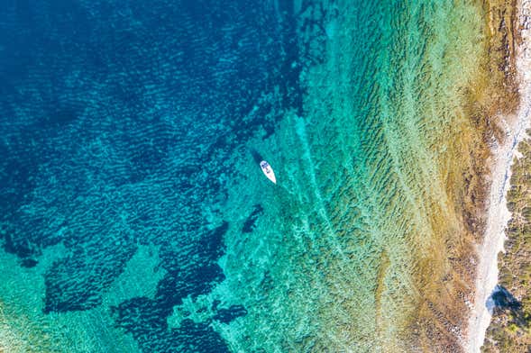 La siguiente parada de la excursión será en la bahía de Solinska, en la que también dispondréis de tiempo para daros un baño. Seguidamente, nos dirigiremos en lancha hasta la Laguna Azul, un rincón de aguas turquesas que parece sacado de un sueño. Aquí tendréis la oportunidad de descansar, nadar y explorar su apacible entorno.