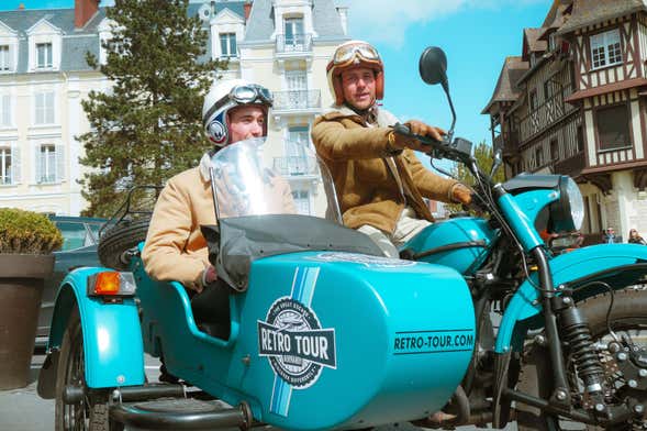 Desde vuestro hotel de Trouville-sur-Mer, donde os recogeremos a la hora que elijáis, iniciaremos la ruta en una flamante motocicleta con sidecar incorporado. El vehículo, decorado al estilo retro, hará las delicias de los amantes de las dos ruedas.
