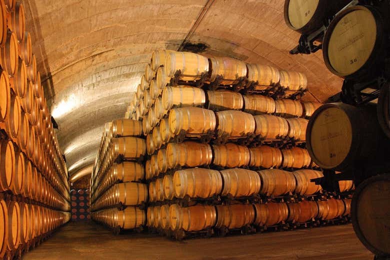 Después, exploraremos la Cueva del Arte, la parte subterránea de la bodega. ¿Sabíais que es la bodega subterránea más grande de España? Veremos este peculiar espacio, en el que se almacenan más de 60000 barricas de crianza y descubriremos cómo descansa el vino Señorío de Los Llanos y Pata Negra.