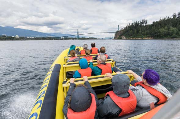 Contemplaremos desde el agua la panorámica que nos deja el puerto de Vancouver y pasaremos bajo el puente Lions Gate. Además, durante la hora y media de navegación, la zódiac irá realizando diferentes paradas para que podáis hacer fotografías y para contaros la historia de los puntos más destacados de Vancouver.
