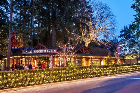 Con la caída del sol, llegará el momento de visitar el Capilano Park. Una vez lleguemos a este parque, disfrutaremos de la época más mágica del año contemplando las Canyon Lights. Estas famosas luces de Navidad iluminan con sus coloridos tonos el puente colgante Capilano Suspension Bridge y el bosque de sus alrededores. ¡Podréis captar unas fotografías únicas!