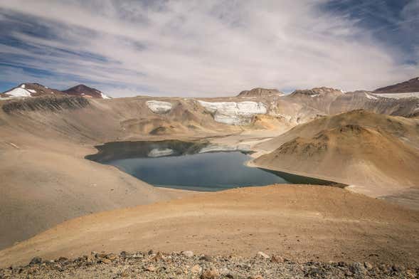 A los pies del estratovolcán del Pissis, uno de los picos más altos de Sudamérica, nos aguarda la Corona del Inca. Este colosal cráter, situado a 5500 metros de altitud, alberga un espectacular lago de un intenso color azul formado por las aguas del deshielo. Una vez lleguemos al cráter, recorreremos este entorno para descubrir su fascinante naturaleza.