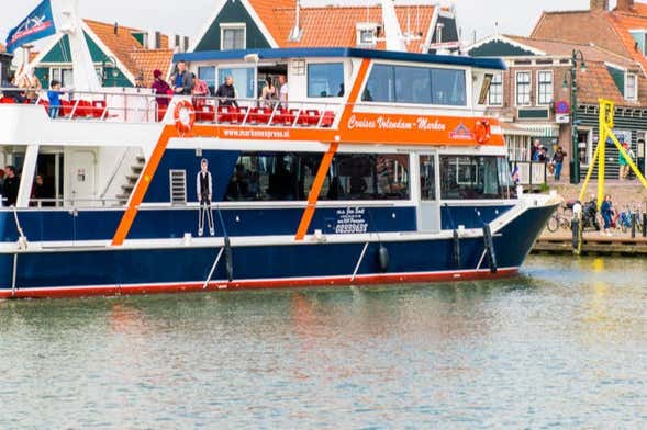 A la hora escogida, zarparéis desde el muelle 39 del puerto de Volendam. Apenas 30 minutos después llegaréis al embarcadero de Marken. Durante esta breve travesía por el lago Markermeer podréis escuchar los comentarios de una audioguía, cuyas explicaciones os permitirán conocer mejor los paisajes de esta bella zona de los Países Bajos.