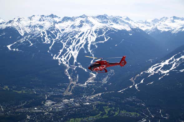 Si escogéis esta modalidad, realizaremos un recorrido panorámico sobre la ciudad de Whistler, veremos sus lagos alimentados por glaciares y volaremos hasta la famosa estación de esquí Blackcomb, ¡la más grande de todo América del Norte!